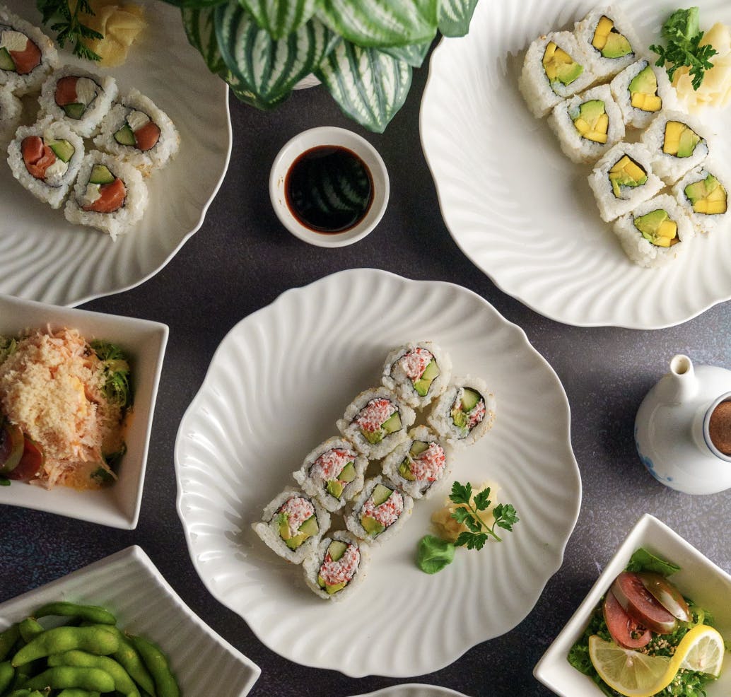 Gin pairs well with tuna and salmon sushi because its botanical notes complement the fish's oceanic flavors. At Saltwater, we have two signature rolls that beautifully complement our signature gin cocktail. Start by ordering the Glow Up, a gin-based cocktail with honey, lemon curd, and elderflower. This cocktail complements the subtle taste of raw fish in our signature Rosemont Roll and Kiss on Fire Roll.